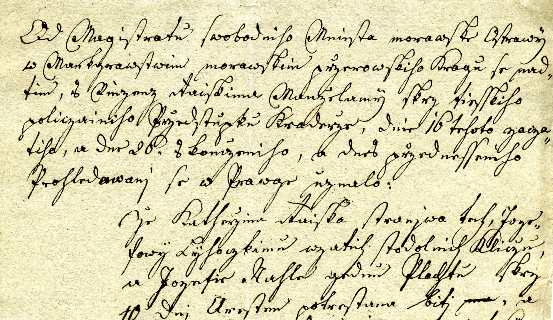 Část česky psaného rozsudku v případu Kateřiny Rajské (Archiv města Moravská Ostrava-stará registratura)