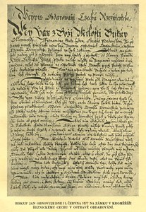 Foto: Opis listiny olomouckého biskupa Jana z 11. června 1577.