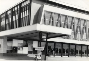 Foto2: Nádražní budova ve Vítkovicích s výstavním poutačem (70. léta 20. stol.)