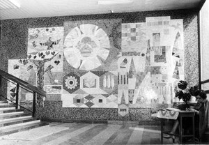 Foto2: Keramická mozaika „Sporivosť“ ve vestibulu Slovenské státní spořitelny v Košicích v ulici Štúrova, 1979