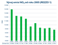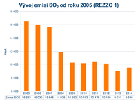 Údaje v níže uvedených grafech, které zobrazují vývoj emisí SO2, CO a NOX od roku 2005 u zvláště velkých a velkých zdrojů znečištění, byly získány z veřejné dostupných zdrojů Českého hydrometeorologického ústavu (ČHMÚ).
