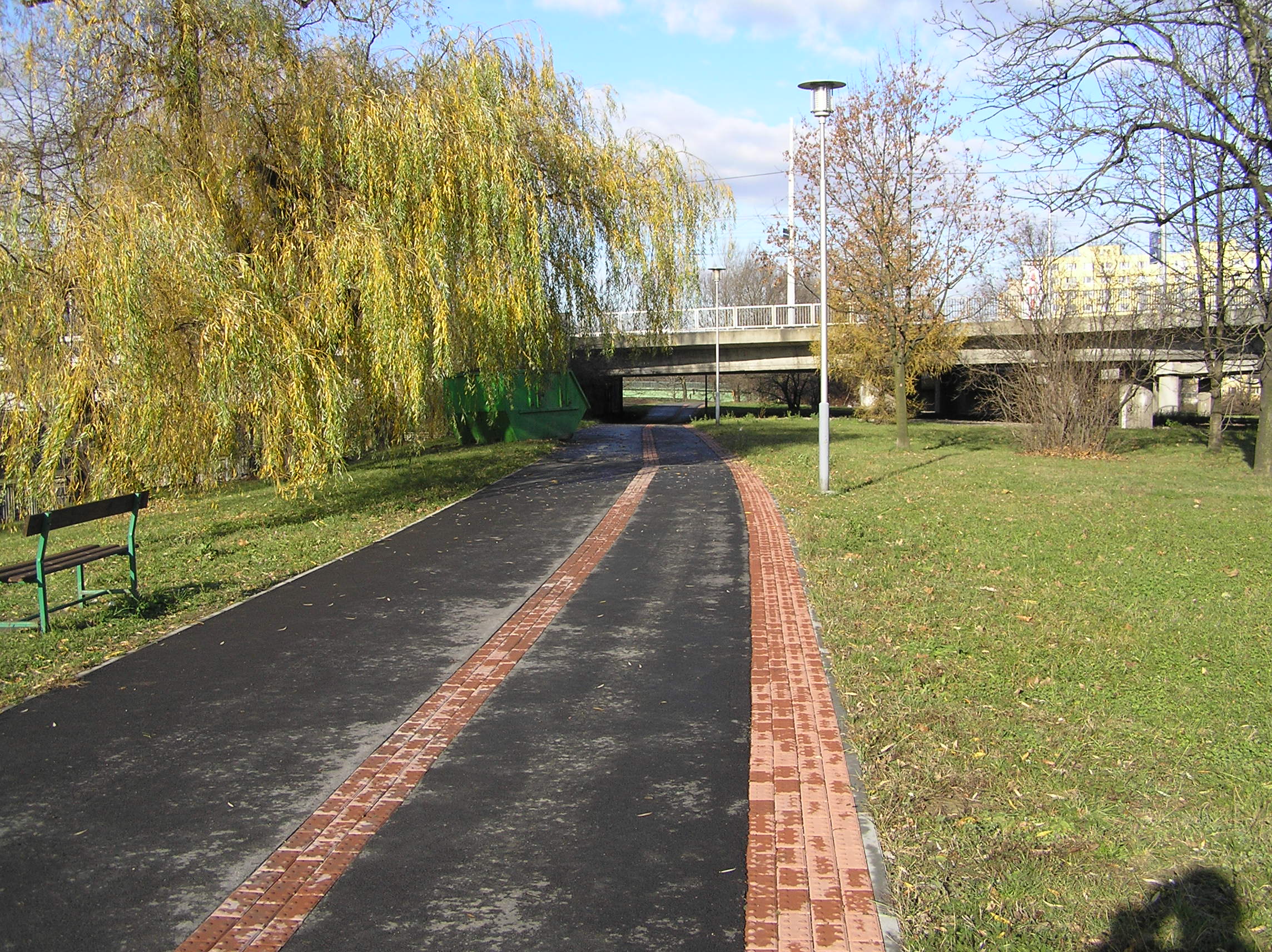 Další zprovozněný úsek této trasy vede od trolejbusové smyčky v Koblově stezkou přes koblovský most na pravobřežní hráz Odry, po které míří trasa proti proudu řeky až k soutoku s Ostravicí. Stezka podchází dálniční most a vede po břehu proti proudu Ostravice, kde se v prostoru ul. Riegrovy navazuje na trasu E. Společně míří pod most ul. Muglinovské a trasa J dále pokračuje stezkou k ul. Bohumínské a podél domova důchodců na Kamenci k lávce k Nové radnici. Trasa vede dále po stezce na Seidlerovo nábřeží, podjíždí Sýkorův most, vede kolem loděnice a navazuje u hradní lávky na cyklotrasu E,