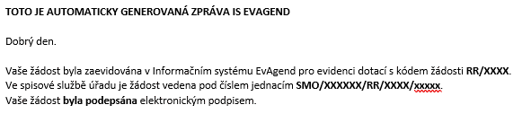 D3. Potvrzení datové zprávy podané prostřednictvím systému EvAgend (žádosti o dotace)