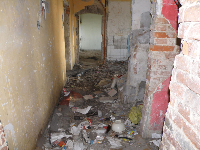 - Disturbed inner house sewerage system (pulled out pipes). The situation resulted in the infiltration of waste waters in the building inner spaces
