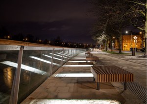 The cycle route has been separated from the pedestrian walkway, new greenery has been planted, and street furniture has been installed. The dominant feature is a new suspended gallery featuring an anti-slip glass floor with underlighting. In upcoming years, the embankment near the new University of Ostrava campus will also be revitalized.