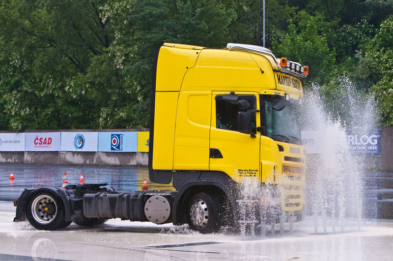 Přes ztížené podmínky nechyběly ani ukázkové jízdy na polygonu, prezentace speciálních produktů Centra bezpečné jízdy - úsekového měření rychlosti vozidel, simulace dopravní nehody kamionu s osobním autem včetně zásahu záchranářské techniky a další zajímavé záležitosti včetně bohatého doprovodného programu.