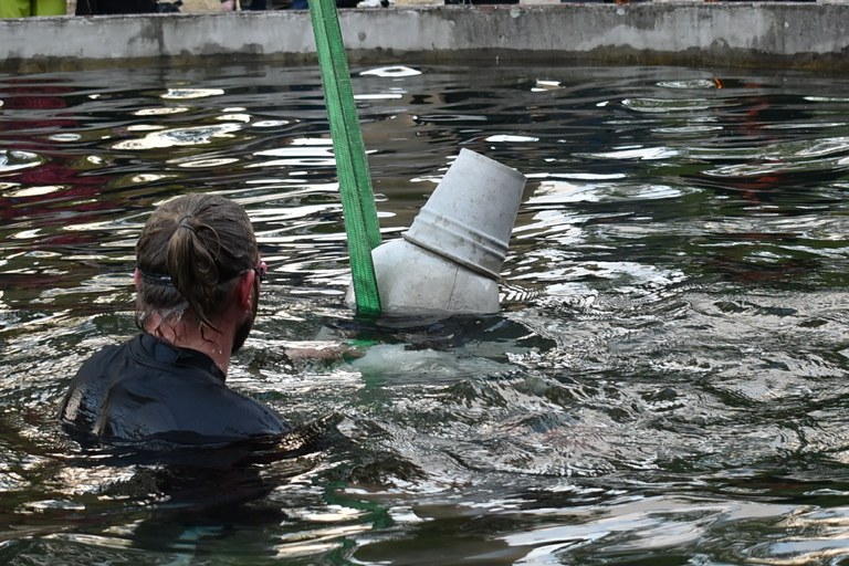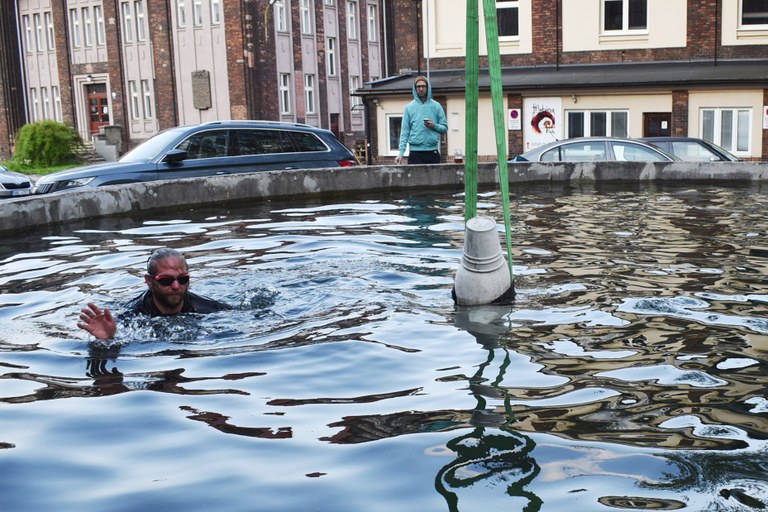 Ostravská sochařka Šárka Mikesková vytvořila plastiku, která se stala součástí podvodní expozice v kašně v areálu bývalého dolu Hlubina.