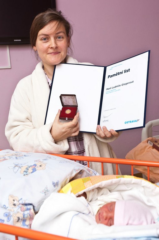 První ostravské miminko roku 2012 se narodilo 1. ledna 2012 v jednu hodinu a pět minut v Městské nemocnici Ostrava. Holčička dostala jméno Marie Ludmila, váží 2550 gramů a měří 47 centimetrů. Dnes ji uvítal jako prvního letošního občánka města Ostravy primátor Petr Kajnar spolu se svou náměstkyní Simonou Piperkovou. Uvítání se zúčastnil také ředitel nemocnice Tomáš Nykel.