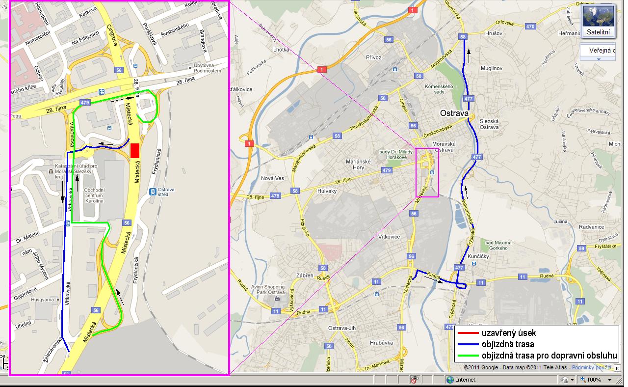 Objízdná trasa pro záchranný systém a linkovou dopravu je vedena stejně jako trasa pro dopravní obsluhu - rampou kolem autobazaru AAA na silnici III/4793 – ul.Vítkovická, II/479 – ul.28. října a zpět na I/56 ul.Místeckou.