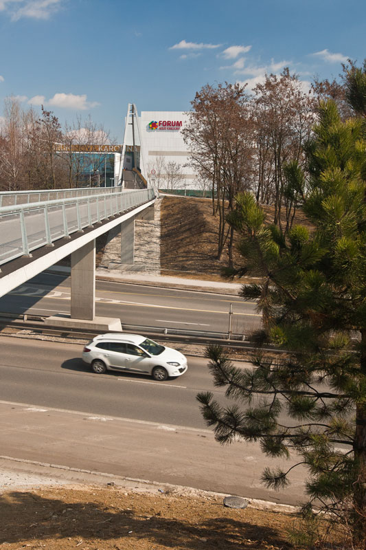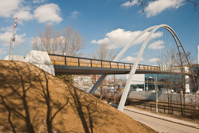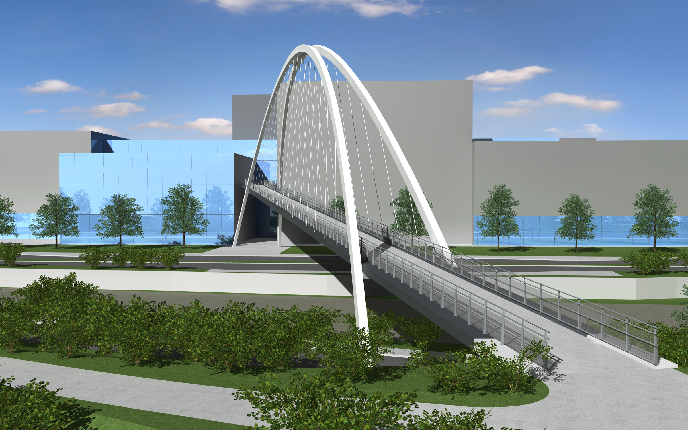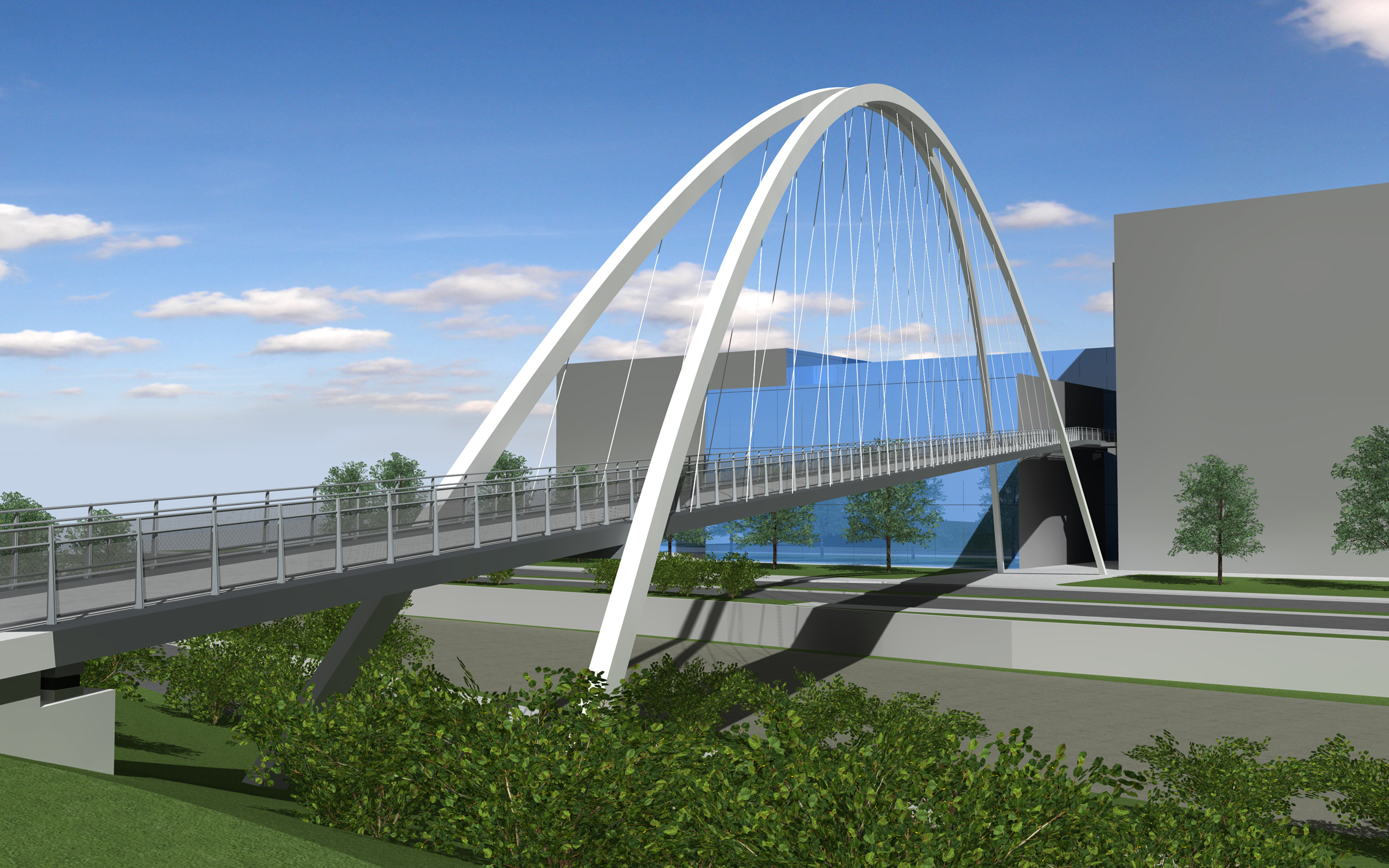 Přemostění ulice Porážkové, trati ČD a ulice Frýdlantské je řešeno obloukovou konstrukcí o jednom poli s mezilehlou mostovkou. Mostovka je ve střední části zavěšena na oblouk prostřednictvím závěsů a spojuje 2.NP Obchodního a zábavního centra a prostor městské zeleně mezi ulicí Frýdlantskou a Místeckou. Celková délka mostovky je 145 m. Šířka nosné konstrukce je 4,60 m, volná šířka mezi zábradlím je 3,50 m. Hlavní nosný prvek je tvořen dvojící skloněných oblouků tvořících v příčném řezu písmeno „A“. Mostovka je navržena ocelová, tzv. ortotropní.