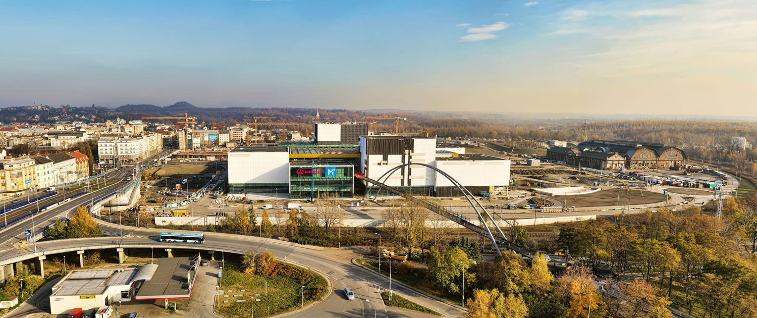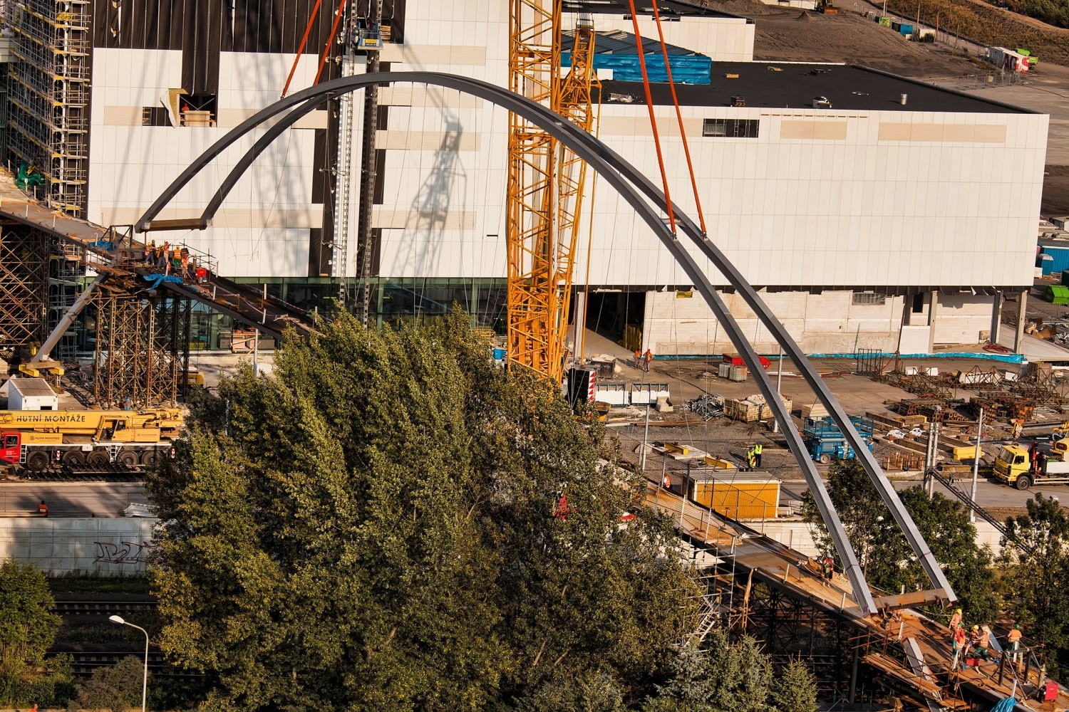 V průběhu roku byla provedena montáž nové lávky. Přinášíme snímek z osazování oblouku lávky a celkový pohled na oblast Nové Karoliny z října 2011 od ústředního autobusového nádraží.