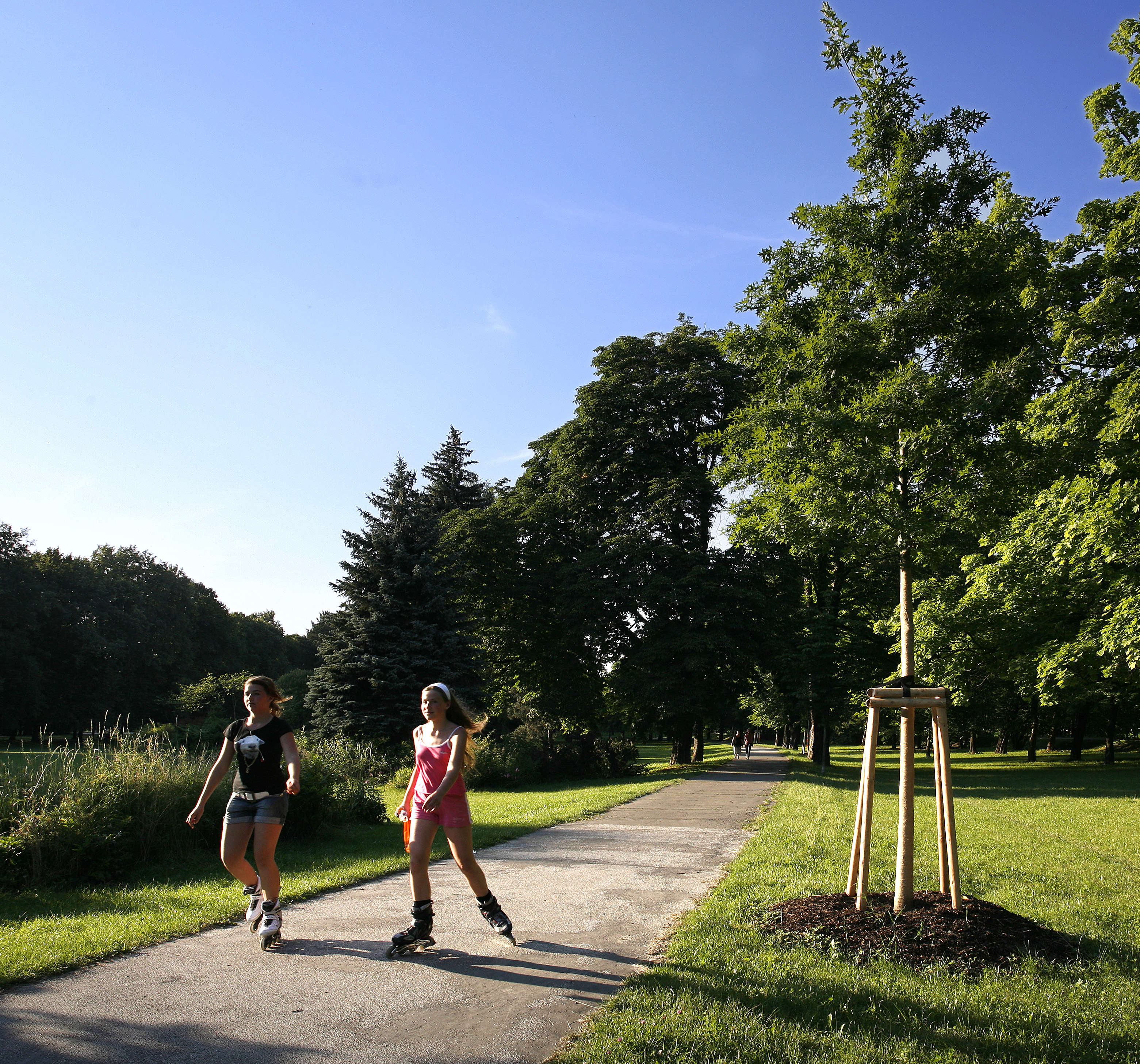 Centrální promenáda u radnice navazuje na nábřeží, probíhá téměř v celé délce sadů a na severu je ukončena rondelem. Zastavení u obloukového stromoví s lavičkami tvoří výrazný bod jako klidný ostrůvek na jinak rušné promenádě.