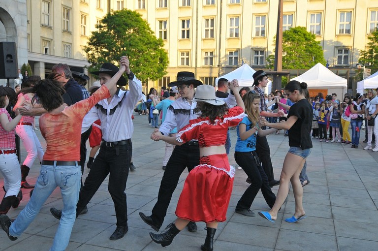 Na Prokešově náměstí byl pro děti připraven Tvůrčí podvečer – výtvarné dílničky Středisek volného času Ostrava. Děti mohly tvořit keramické výrobky, vyzkoušet si malování na tvář, vyrobit různá dílka z papíru nebo přímo muzejní strašidlo a podobně. Pro všechny dospělé byla připravena Hudebně-taneční kavárna a veřejná tančírna na náměstí. K poslechu hrál swingový dechový kvintet studentů Fakulty umění Ostravské univerzity a ostravský hudebník Patrik Kee, moderoval Robert Galia. Mnozí si vyzkoušeli tradiční country tance se souborem Hazard, Taneční klub Jarky Calábkové nabídl výuku společenských tanců.