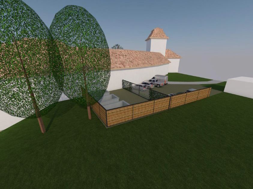 Další důležitou částí projektu je úprava plochy po levé straně bočního vstupu do hradu, na které se nyní nacházejí kontejnery a parkují na ní služební vozidla. Rekonstrukcí celé nevzhledné plochy vznikne ohrazený prostor se zpevněným povrchem pro parkování vozidel a oddělenou částí pro odpadové hospodářství.