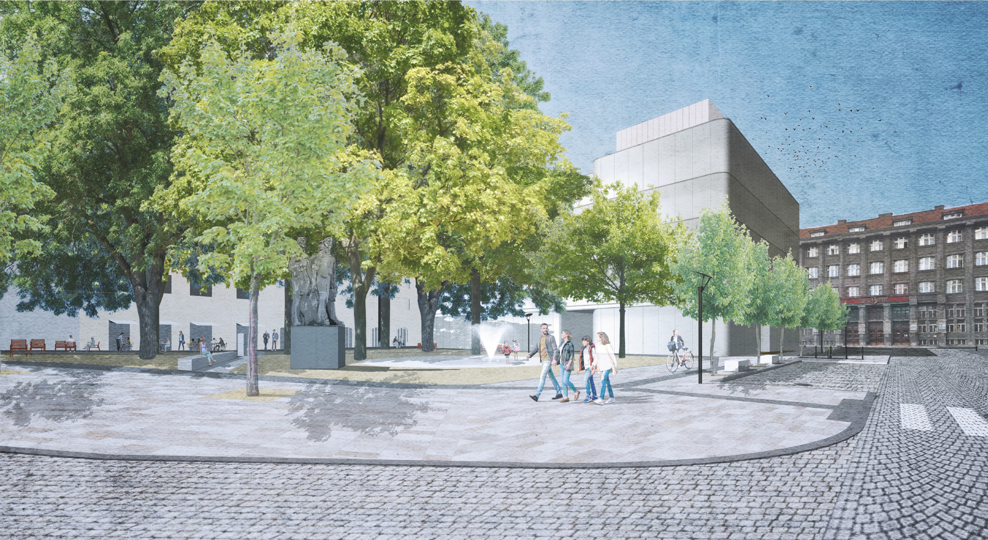 Porota složená z nezávislých odborníků, zástupců města i obvodu vybrala návrh kolektivu autorů Ing. arch. Jiřího Miky, Ing. arch. Martina Materny, Ing. arch. Markéty Káňové, Ing. arch. Petra Svobody, Ing. arch. Adély Kudlové a Ing. arch. Venduly Bažové. Návrh přináší celkovou kultivaci prostoru, který bude nabízet příjemné prostředí pro trávení času a případně také pro konání různých aktivit. Zároveň počítá s možností budoucí výstavby v ploše bývalého Německého domu.