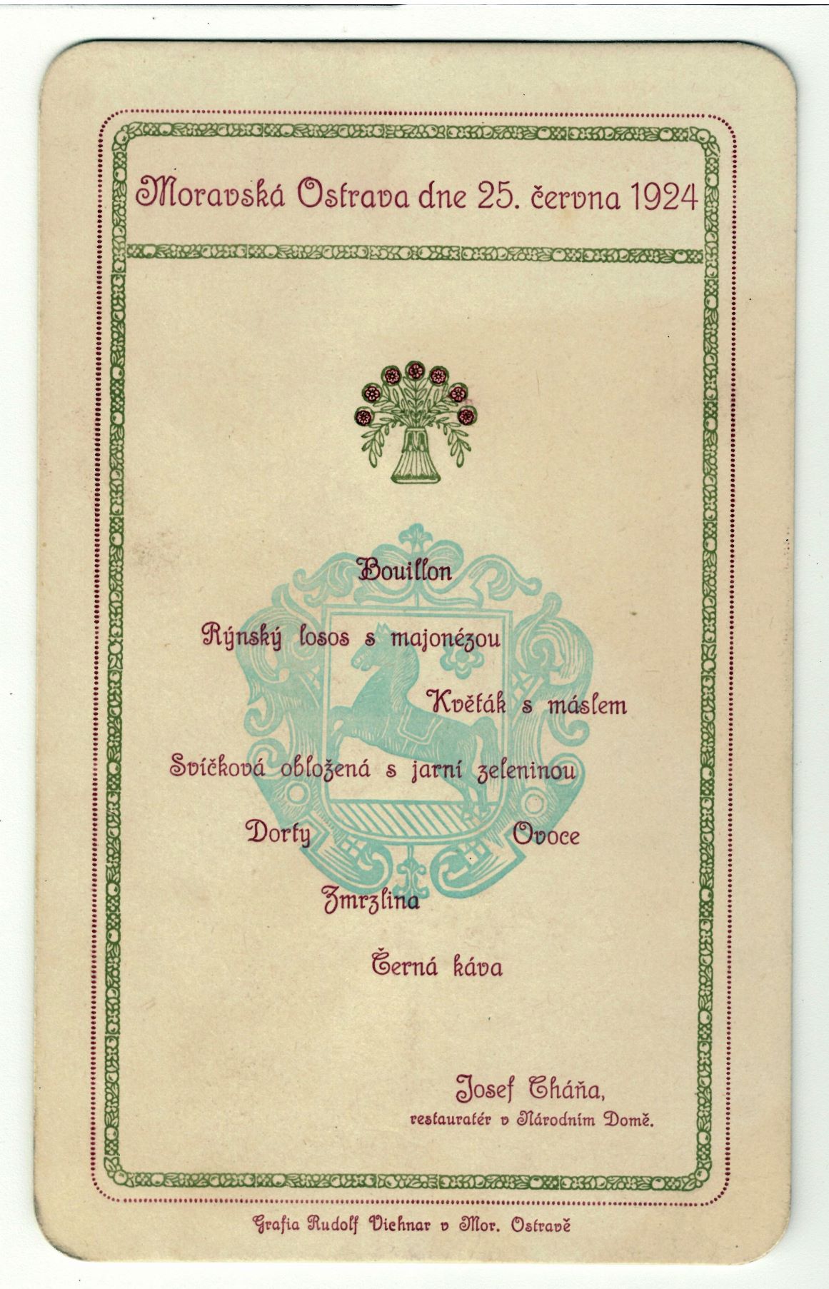Tento vyčerpávající maraton byl přerušen polední pauzou; kolem dvanácté se Masaryk vrátil zpět do Moravské Ostravy, kde pro něj byl v Národním domě (dnešní Divadlo Jiřího Myrona) připraven oběd, a kde si také mohl trochu odpočinout. Oběd s prezidentem byl samozřejmě vrcholnou společenskou událostí a díky dochované korespondenci víme nejen to, že se ho účastnilo téměř sedmdesát osob z řad ostravské honorace, ale známe i takový detail, že hlavním chodem byla svíčková.