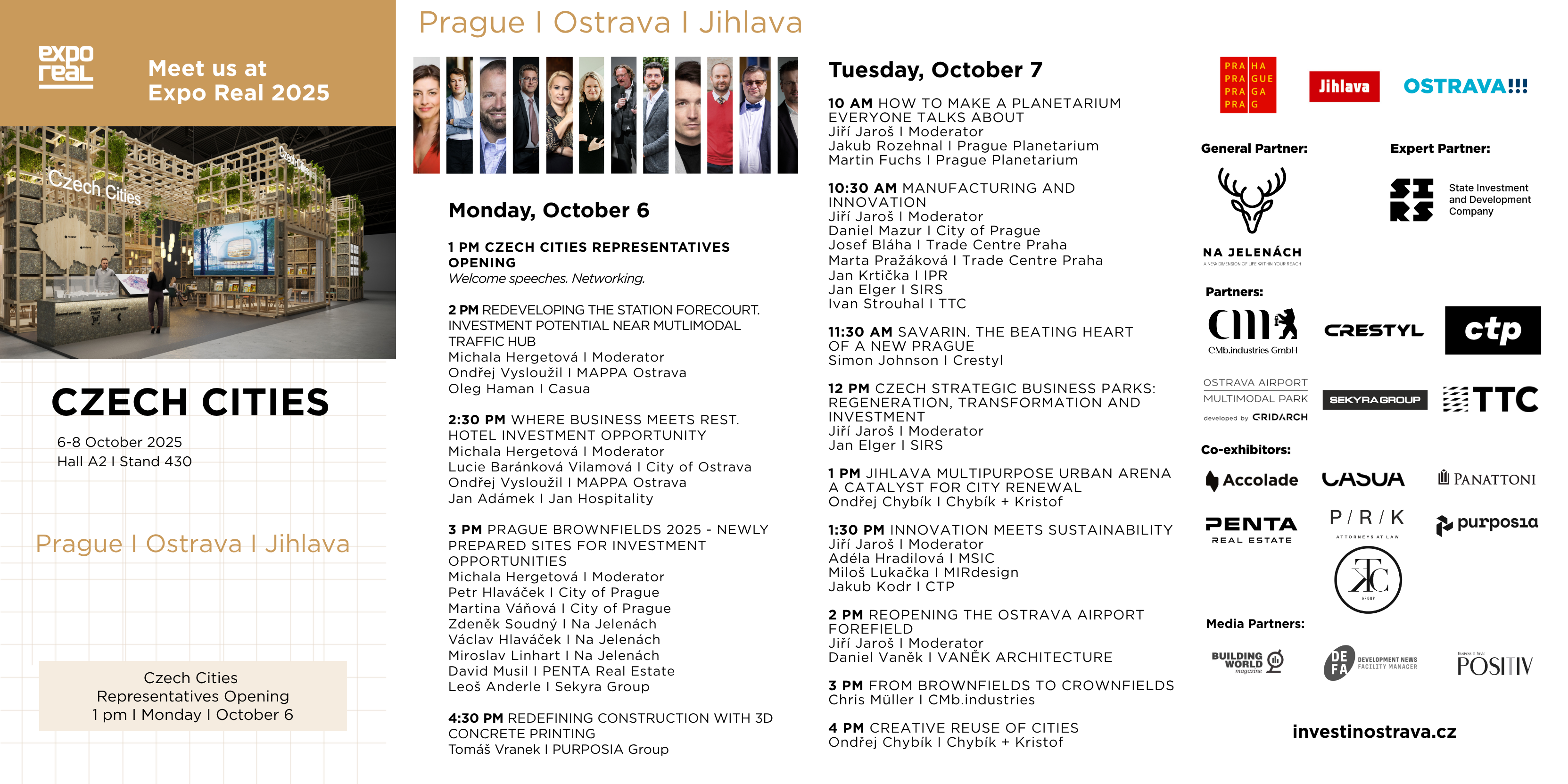 • Ostrava Praha a Jihlava představí na Expo Real své vize, architekturu i nové příležitosti pro investory