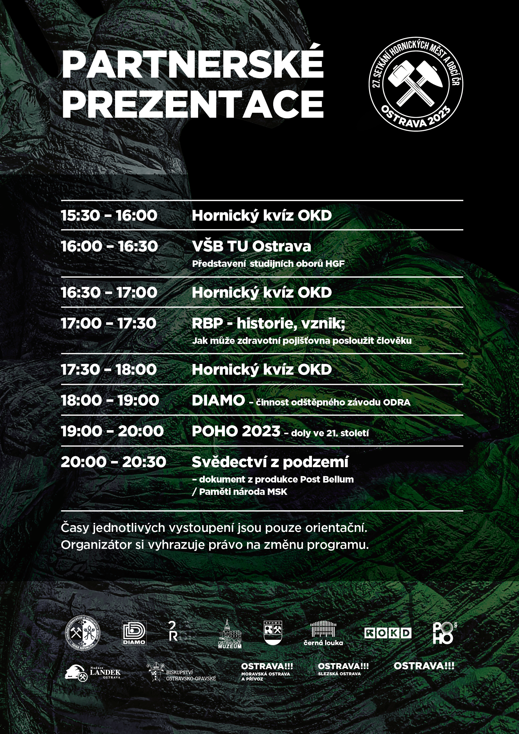 Historii hornictví na Ostravsku přiblíží dvojvýstava, jejíž vernisáž se koná v 17 hodin dne 8. září 2023 ve foyer Nové radnice. Historické zajímavosti připravil Archiv města Ostravy spolu s Ostravským muzeem a lidé mohou výstavu v radničních prostorách zhlédnout až do konce září 2023. V sobotu 9. září 2023 se v katedrále Božského Spasitele bude od 10.30 hodin konat slavnostní mše svatá. Po jejím skončení vyrazí do ulic města hornická paráda, tedy průvod stovek horníků, kteří projdou centrem města a zamíří na Slezskoostravský hrad, kde je připraven i program pro veřejnost.