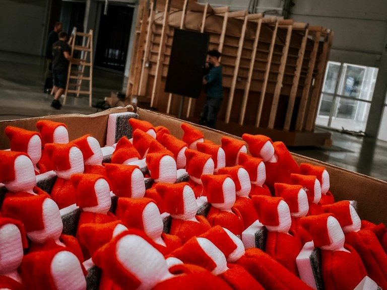 Úprava modelu pro vystavení a přeprava do Ostravy / „Pro vystavení modelu bylo po ukončení měření nutné provést několik podstatných úprav jeho interiéru tak, aby co nejlépe představoval budoucí podobu koncertního sálu," sděluje Jan Antoš ze společnosti Aveton, která stojí za výrobou modelu a dodává „nejkomplikovanějším bodem přípravy byl přesun tří tunového modelu z vysoké platformy na transportní trámy pro kamionovou přepravu. Postupné vyřezávaní podkonstrukce a opatrné spouštění modelu pomocí vysokozdvižných vozíků bylo pro všechny zúčastněné opravdu napínavé. Následně došlo k zesílení nosné obvodové konstrukce nebo instalaci doplňkových stropních trámu." Model do Ostravy vyrazil v noci z 11. na 12. července, během 12. července se prováděly finální úpravy modelu na místě – instalace figurek, sedaček, podstropních panelů apod. Od 13. července je model součástí výstavních prostor městské galerie PLATO.