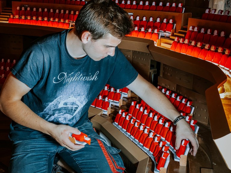 Několik měsíců byly v modelu interiéru ostravského koncertního sálu v měřítku 1:10 na malých čalouněných křeslech usazeny pouze figurky s vlasy a oblečky. Napodobovaly tak posluchače v sále a pomáhaly v simulaci reálných akustických podmínek.