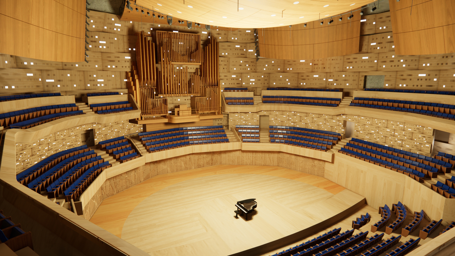 Lze připomenout, že základní výsledná podoba koncertního sálu je známa od července 2019, kdy byly vyhlášeny výsledky největší architektonické soutěže v novodobé historii města, připravované již od roku 2017. Autory vítězného návrhu jsou studia Steven Holl Architects z New Yorku a Architecture Acts z Prahy. Aktuálně na projektu spolupracuje zhruba 70 odborníků, kteří architektonický návrh rozpracovávají do nejmenšího detailu, od zakládání stavby a statiky, přes akustické parametry až po detaily interiérových prvků. Stavba, jež Ostravu pevně zakotví na mapu světové architektury, je unikátní v mnoha směrech. Nabídne komplexní hudební, kulturní, produkční i vzdělávací zázemí. Snoubí se v ní přitom unikátní architektonické řešení, osobitý styl, nejmodernější technologie, současně však také citlivě naváže na odkaz architekta Jaroslava Fragnera, neboť propojí památkově chráněný objekt s nadčasovou novostavbou.