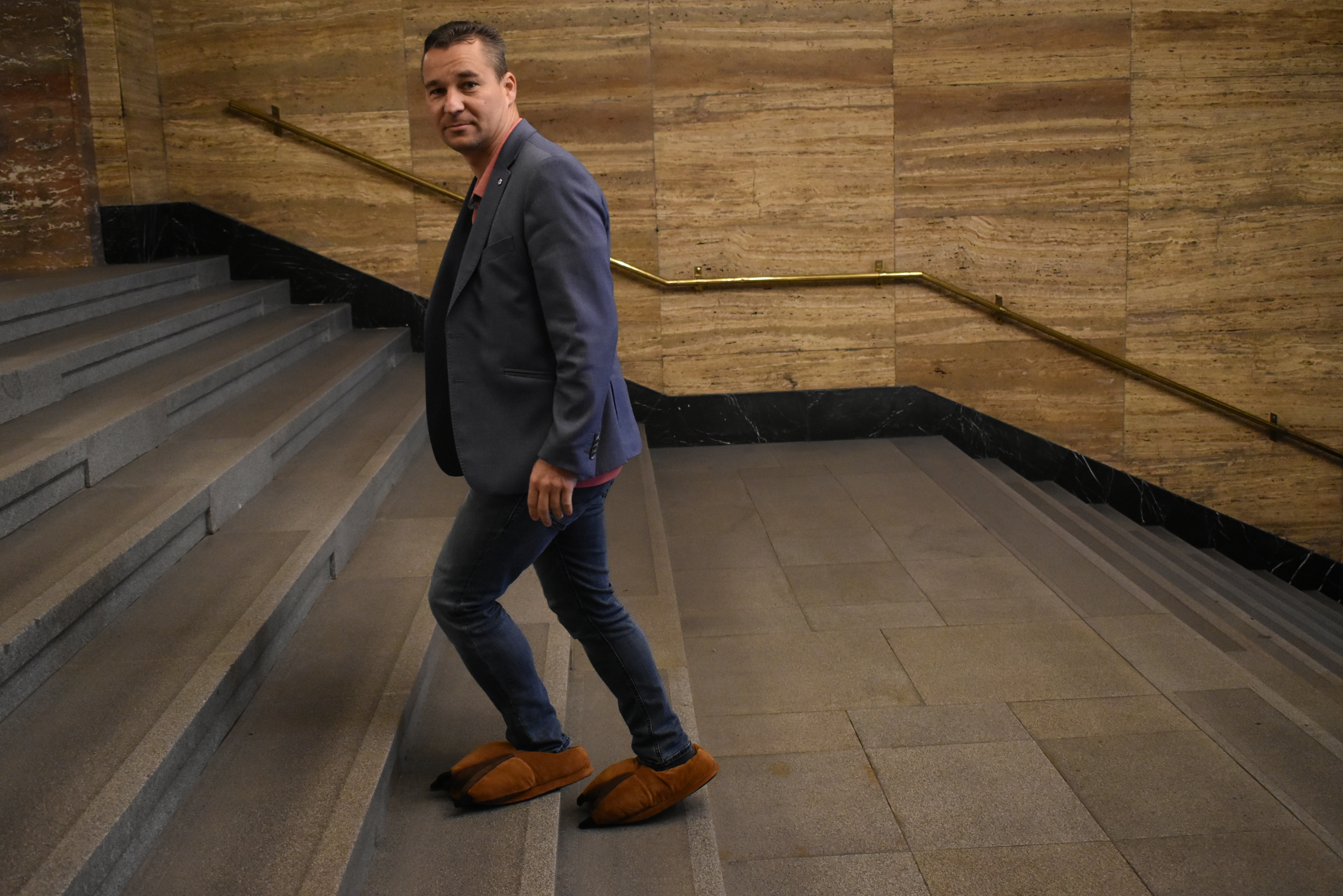 Jak se můžete přesvědčit níže, některé z papučí, které dnes byly na Nové radnici k vidění, působily skutečně nepřehlédnutelně.