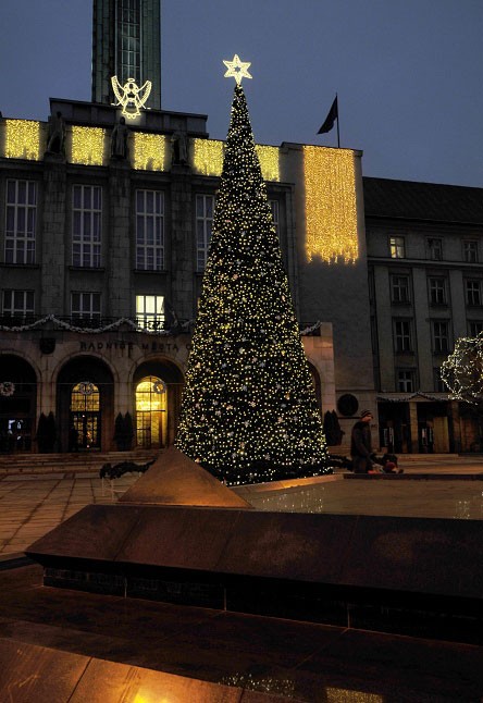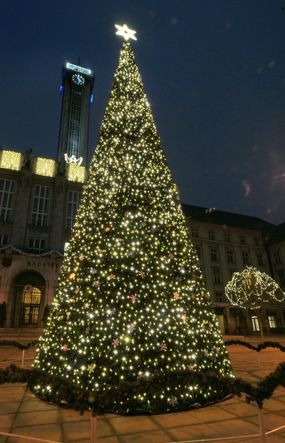 Tradičně před radnicí stojí vánoční strom – dvanáctimetrový kužel, který je osvětlen 32 kusy řetězů s LED diodami v teplé bílé barvě, každý z nich má 24 metrů. Po stranách stromu troubí na trubky šest andělů o výšce dvou metrů. Andělé jsou vyrobeni z duralových profilů a potaženi drobnými LED diodami ve studené bílé barvě, aby patřičně zářili a dominovali prostoru. Dvanáct stromů kolem náměstí je ověšeno 72 kusy 12metrových LED ozdob v teplé bílé barvě.