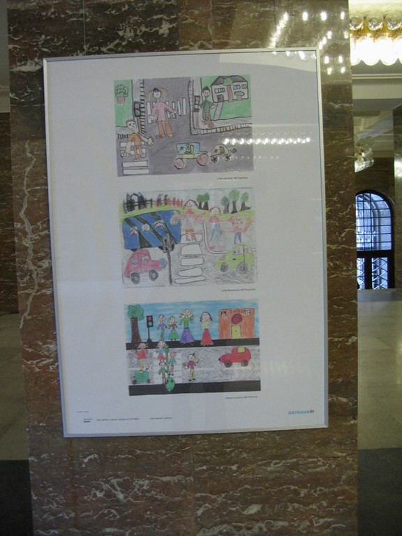 Ve vstupních prostorách Nové radnice si návštěvníci mohou prohlédnout výsledky tradiční výtvarné soutěže „Děti, pozor, červená!“, kterou pořádá Aktiv BESIP, pracovní skupina při odboru dopravy MMO a Klub dopravní výchovy. Letošní soutěž, která je otevřená všem mateřským a základním školám a střediskům volného času na území Ostravy a správně přičleněných obcí, byla na téma Bezpečná cesta do škol a školek.