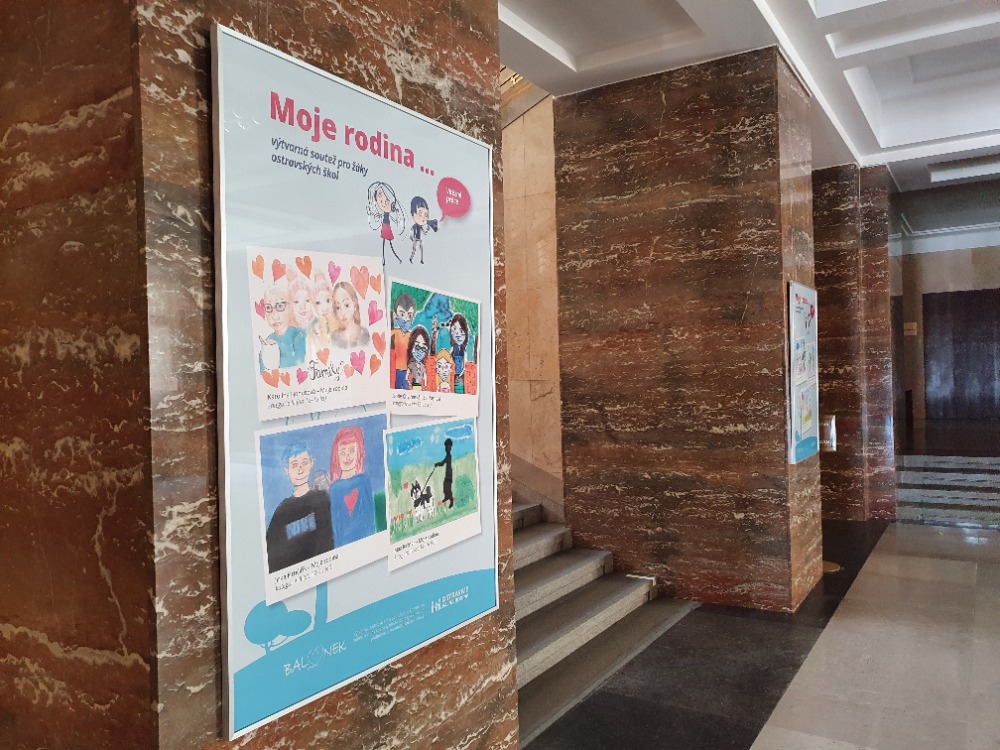 Výstava obrázků rodiny ve foyer Nové radnice