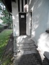 Hlavní vstup je zajištěn dvoukřídlou bránou, umožňující vjezd vozidel údržby. Vedle ní je umístěna menší branka pro pěší, která má průjezdnou šířku 126 cm. U vstupu se nachází zvýšená obruba a za ní následuje komunikace ze zámkové dlažby.