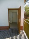 Hlavní vstup je zajištěn dvoukřídlou bránou, umožňující vjezd vozidel údržby. Vedle ní je umístěna menší branka pro pěší, která má průjezdnou šířku 92 cm. Přístupová komunikace je před i za hlavní branou tvořena zámkovou dlažbou. V jednom místě je mírně propadlá.