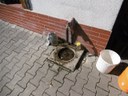 Vedlejší uzamknutý vjezd, nacházející se v ulici Za Hřbitovem, slouží pro potřeby odvozu odpadu.