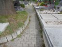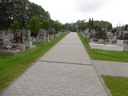 Hlavní pěší komunikace na hřbitově je provedena ze zámkové dlažby s podélným sklonem místy do 7%. Zámková dlažba je v dobrém stavu.