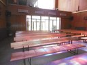 Za zádveřím prostorů „Rozloučení v úzkém rodinném kruhu“ se nachází dva schody vedoucí k vyvýšenému posezení s částečně prosklenou stěnou pro rozloučení v úzkém rodinném kruhu. Kolem schodů je možný průjezd (nejuzší průjezdná šířka 112 cm) k částečně upravenému WC, které se nachází v zadní části traktu. Manipulační prostor je omezený a povrch podlahy tvoří koberec.