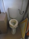 V přízemí se nachází samostatné upravené WC (dveře šířka 80 cm, šířka 256 cm hloubka 270 cm). WC mísa je osazena z čelního pohledu u levé stěny. Přístup k míse zleva je dostatečný (135 cm), výška záchodového prkénka (s nadstavcem 58 cm). Mísa WC je opatřena dvěma sklopnými madly (délka 90 cm, výška 84 cm, osová vzdálenost 54 cm). Kabina je vybavena velkým zdravotním umývadlem osazeným na protilehlé stěně než WC mísa. V levém rohu za vstupem je osazena keramická výlevka. Na dveřích kabiny chybí madlo a označení piktogramem vozíku.