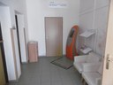 Ze zádveří se vchází do prostoru v přízemí, kde se nachází jednokřídlé dveře (průjezdná šířka 90 cm, práh 2 cm) vedoucí ke schodišti. Chodba je šířkově vyhovující. Dveře do kanceláří jsou jednokřídlé (průjezdní šířka 80 cm, prahy 2 cm) ve výklenku (šířka 88 cm, hloubka 23 cm). Stoly v kancelářích mají výšku 75 cm (podjezdová výška 73 cm.) Podlahu tvoří dlažba, v kancelářích je lino.