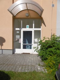 Hlavní vstup do budovy je bariérový (za vstupními dveřmi v zádveří +6 schodů).
