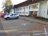 Cca 15 m od hlavního vstupu se na parkovišti u budovy „C“ nacházejí dvě vyhrazené parkovací místa. Problematický přístup přes snížený obrubník na vedlejším parkovišti, při obsazení nedostatečná šíře po výjezd na chodník.