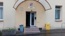 Vstup do budovy na podestu (šířka 136 cm, hloubka 100 cm) je bariérový (+ 3 schody). Hlavní vstupní dveře objektu jsou dvoukřídlé (průjezdová šířka hlavního křídla 60 cm, šířka vedlejšího křídla 67 cm), otevírají se mechanicky směrem dovnitř a mají práh (výška 5 cm vnější, 9,5 cm vnitřní). Zvonková signalizace (výška 113 cm) je umístěna pod schody vpravo na zdi a je označena piktogramem vozíku. Ze zádveří (šířka 302, hloubka 198 cm) vedou do interiéru další dvoukřídlé dveře (průjezdová šířka hlavního křídla 78 cm, šířka vedlejšího křídla 85 cm), otevírají se mechanicky směrem do zádveří a mají práh (výška 1,5 cm).