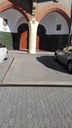 Přístupové komunikace mezi budovu úřadu a nástupišti jsou provedeny ze zámkové dlažby, kamenné dlažby, popraskaného asfaltu a dlažebních kostek.