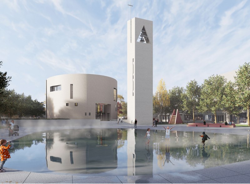 Nově by zde měl přibýt výrazný vodní prvek, stromy a plocha pro konání příležitostných komunitních akcí. Parkovací stání, která v současnosti zabírají velkou část prostoru před kostelem, budou umístěna na jeho boční stranu.