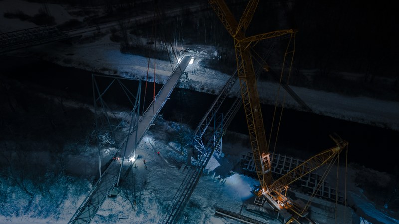 Video ze zavěšování lávky můžete vidět tady: https://www.youtube.com/watch?v=gZHYoCHdyXk