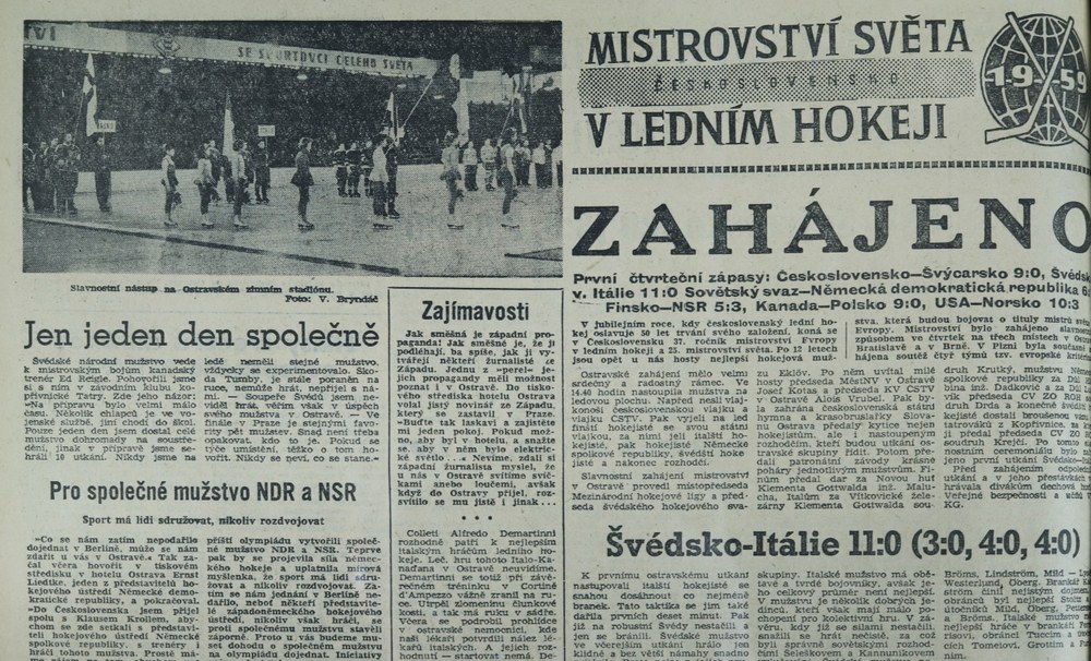 Ve dnech 5.- 7. března 1959 se Ostrava stala poprvé dějištěm světového šampionátu v ledním hokeji. Turnajová utkání viděli diváci také v Praze, Bratislavě, Brně, Kladně, Kolíně, Mladé Boleslavi a Plzni. Na ostravském zimním stadionu Josefa Kotase se odehrálo šest utkání základní skupiny C, tvořené týmy Švédska, Finska, Itálie a Spolkové republiky Německo. Boje základní skupiny zhlédlo na stadionu přibližně 30 tisíc diváků. V poslední hrací den proběhla u předsedy městského národního výboru Josefa Kotase návštěva účastníků mistrovství světa, vedená viceprezidentem Mezinárodní hokejové federace Rudolfem Eklöwem, který šampionát na ostravském ledě také osobně zahajoval.