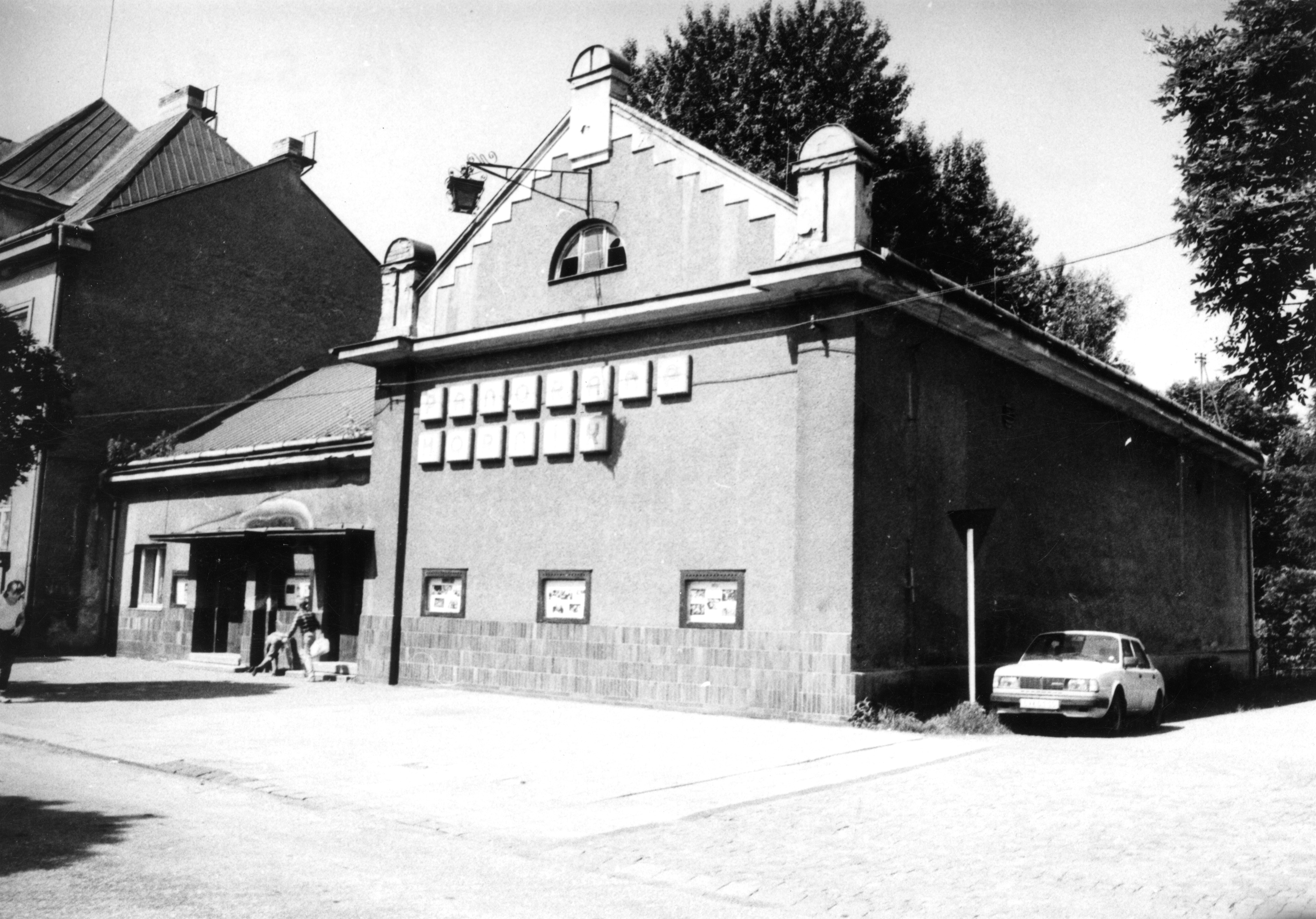 Foto 1) Budova kina v Kunčičkách v Holvekově ulici v roce 1989