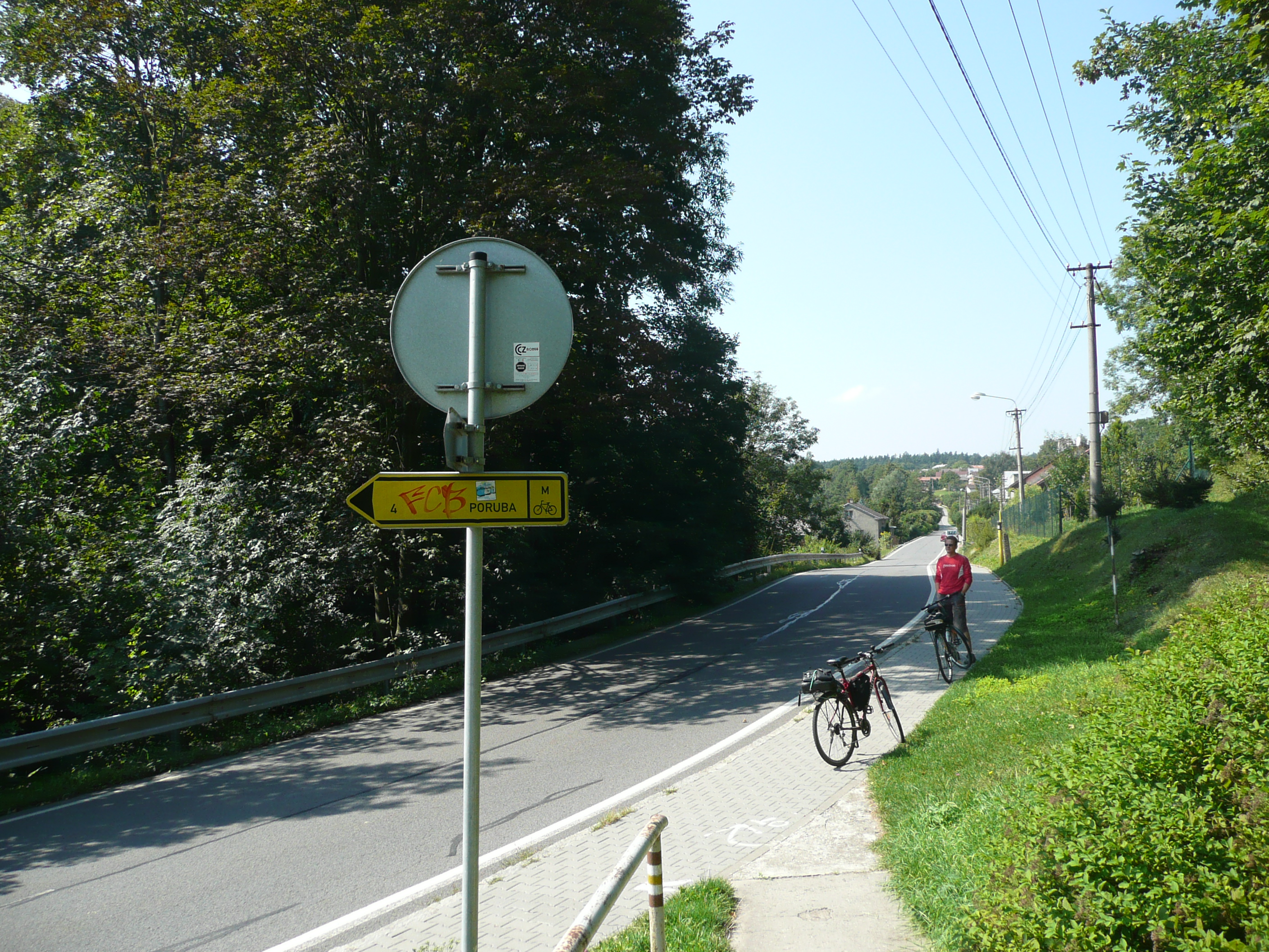Trasa vede po silnici spojující Velkou Polom s Plesnou (ul. 26. dubna). Trasa navazuje na cyklotrasu M v centru Plesné a pokračuje dále ul. Dobroslavickou.
