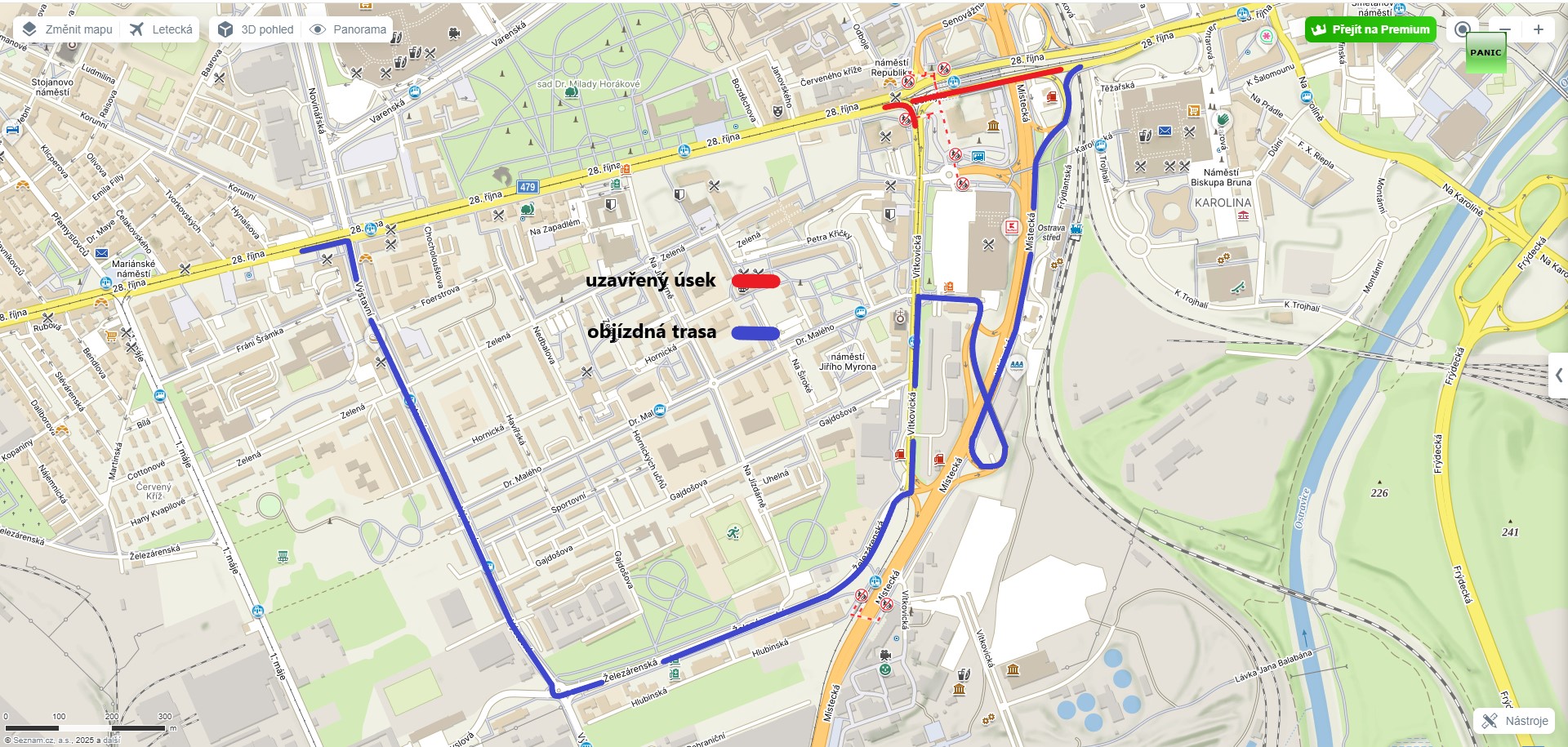 objízdná trasa z ul. Přemyslovců, na ul. Emila Filly, ul. Korunní a ul. Přemyslovců, popř. z ul. Přemyslovců na ul. Karasova, Boleslavova na ul. Mojmírovců |