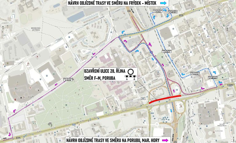 The first, which is in full swing, focuses on the reconstruction of the tram line, platforms, underpasses and adjacent roads. Both motorists and passengers using public transport must expect traffic restrictions. Road traffic has been limited in the area since July 6. Both lanes towards Poruba are completely closed and partially also in the direction of the city center.