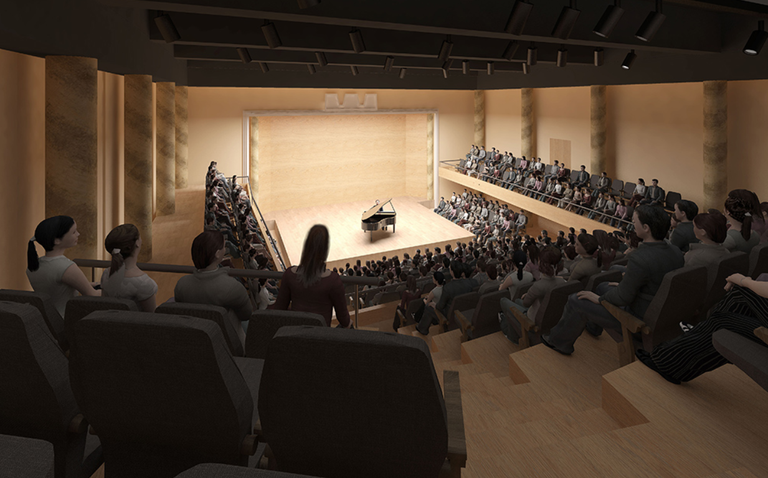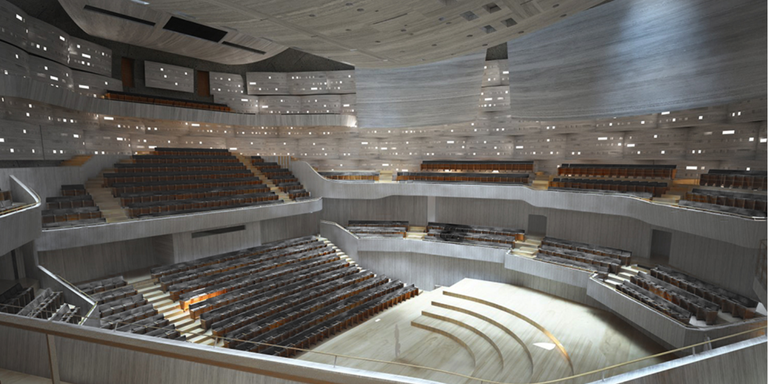 Visualization of the interior of the main auditorium. Source: study by Steven Holl Architects and Architecture Acts