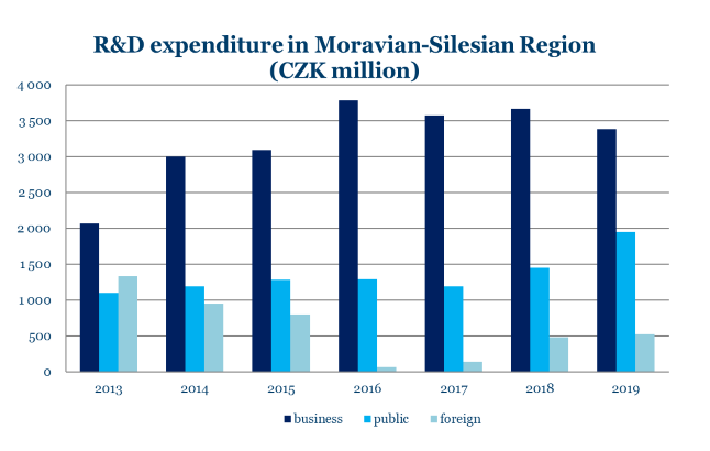 The private sector and universities remain the two key pillars supporting and driving research and development. Private-sector companies in the Region have substantially increased their investment in research and development during recent years as you can see from the graph below. For an overview of innovative companies in the Moravian-Silesian Region and the city of Ostrava go HERE.