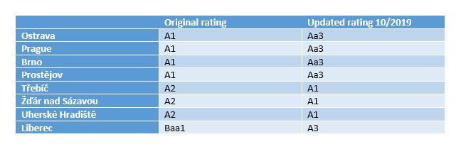 The City of Ostrava has been rated by international rating agency Moody’s since 1998. In the past four years the agency has raised the City’s rating, which is now Aa3/stable. This is the highest rating that the City can currently achieve, because it depends on the total rating of the Czech Republic as a whole (no city can be given a higher rating than the country in which it is located, and Ostrava’s rating is currently the same as the Czech Republic’s rating).